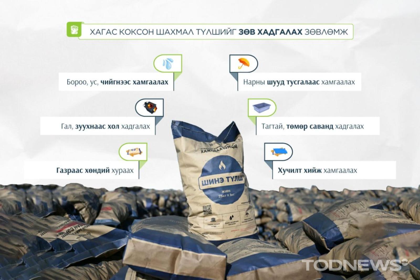Хагас коксон шахмал түлшийг 25 кг-аар савласан бөгөөд нэг шуудайг 5000 төгрөгөөр борлуулж байна. Хэрэглэгчид “Хотула” апп болон “Сайн” карт, иргэний үнэмлэхийн QR кодыг уншуулан түлшээ авах боломжтой.
