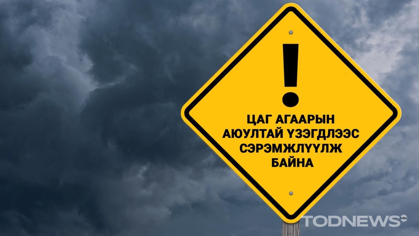 Малчид, иргэд, тээвэрчдийн анхааралд: Арваннэгдүгээр сарын 7-8-нд шилжих шөнө Төв, Сэлэнгэ, Хэнтий, Дорнодын нутгаар цас орж, цасан шуурга шуурч, хүйтэрч, үзэгдэх орчин хязгаарлагдаж, зам, даваа гүвээнд халтиргаа гулгаа, мөстөлт үүсэж, говь, тал, хээрийн нутгаар салхи шуургатай байхыг онцгойлон анхааруулж байна.
