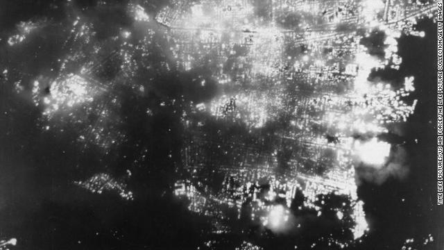 Америкийн нэгдсэн улсын Kanto мужид хаясан B-29 агаарын тэсрэх бөмбөг галын хуй салхийг үүсгэн байшин барилга тэр байтугай амьд хүнийг шатааж бүх зүйлсийг үнсэн товгорог болсон гэж Нихэй эмээ өгүүлдэг. Тэрбээр тэр цаг үед амьд гарсан иргэн юм. Нихэй одоогоор 83 настай.