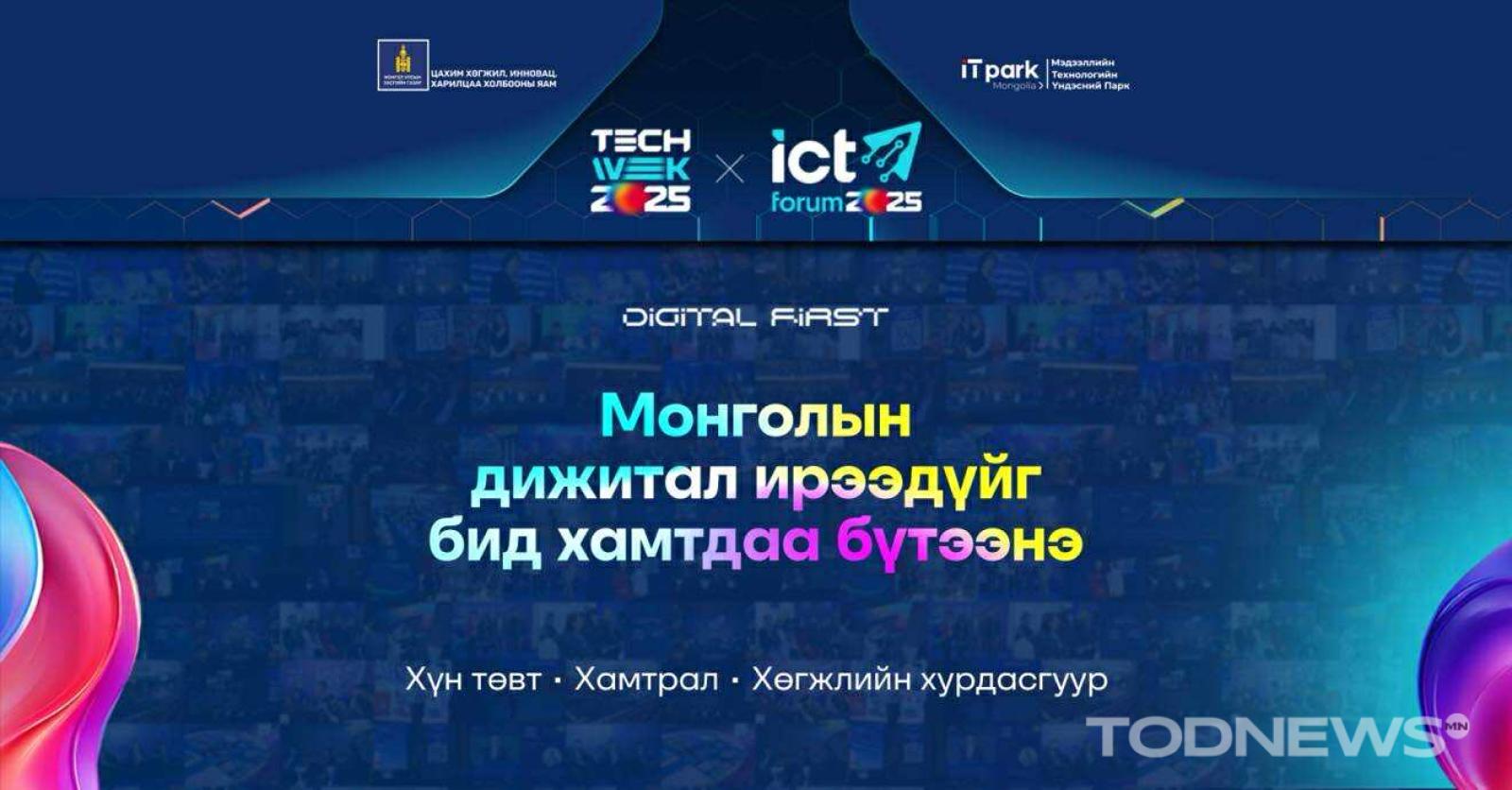 2025 оны 9 дүгээр сарын 19–26. Улаанбаатар хот “Digital First: Цахимаар түрүүнд” уриан дор зохион байгуулагдсан “Tech Week 2025” (9-р сарын 19–25) болон “ICT Forum 2025” (9-р сарын 26) нь Монгол Улсын дижитал шилжилтийн бодлогыг “Бодлогоос бодит хэрэгжилт рүү” шилжүүлсэн түүхэн арга хэмжээ боллоо.