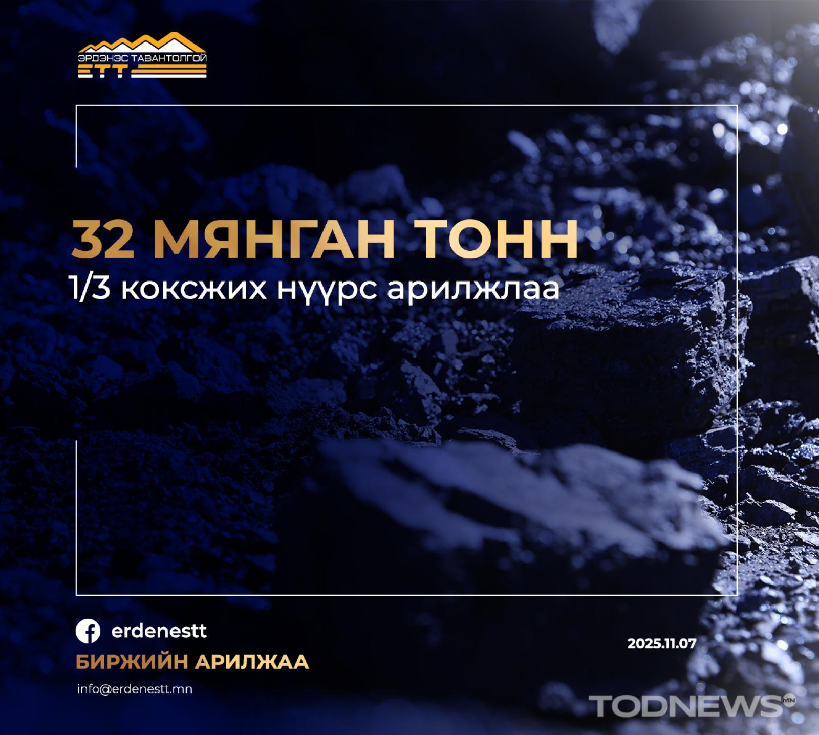 "Эрдэнэс Тавантолгой" ХК 2025 оны 11 дүгээр сарын 07-ны өдөр Монголын Хөрөнгийн Биржээр дамжуулан 1 удаагийн арилжааг амжилттай хийж 3.0 сая ам.долларын үнийн дүн бүхий 32.0 мянган тонн 1/3 коксжих нүүрс арилжааллаа. Арилжаанд оролцогч тонн тутмыг 95.70 ам.доллароор БНХАУ-ын Мандал боомт хүргэж өгөх нөхцөлөөр худалдан авлаа.