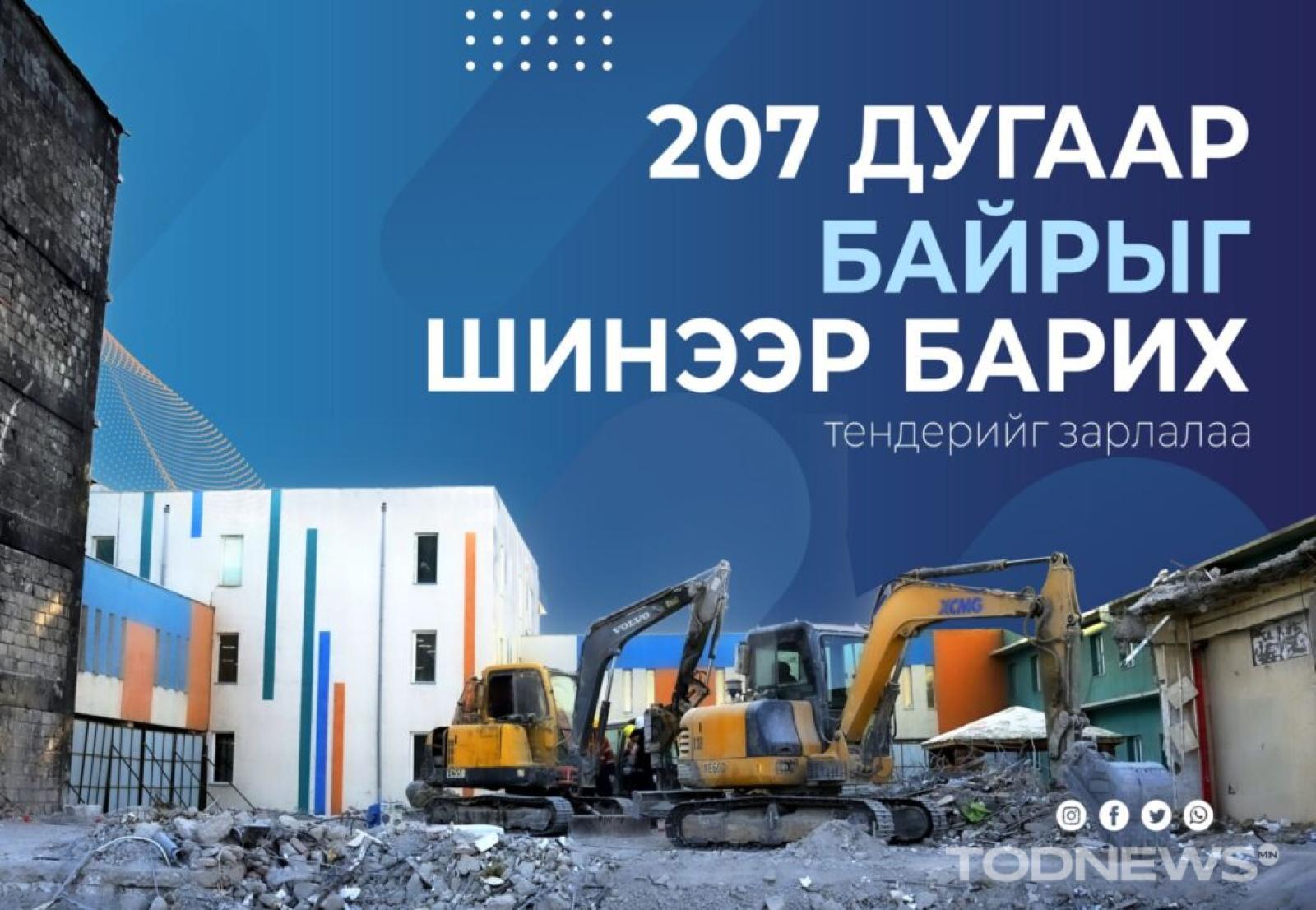 НИТХ-ын 2025 оны 25/133 дугаар тогтоолоор батлагдсан “Түймэрт өртсөн 207 дугаар байрыг шинээр барилгажуулах ажил” төсөл, арга хэмжээний худалдан авах ажиллагааг зохион байгуулах эрхийг нийслэлийн Худалдан авах ажиллагааны газар хэрэгжүүлж байна. Тус төслийн нийт төсөвт өртөг нь 17,339,996,000 төгрөг бөгөөд үүнээс 2026 онд 8,670,000,000 төгрөгийн санхүүжилт олгохоор батлагдсан. Нийслэлийн Ерөнхий архитектурын баталсан эскиз зураг, архитектур төлөвлөлтийн даалгаврын дагуу төсөл, арга хэмжээг хэрэгжүүлнэ.