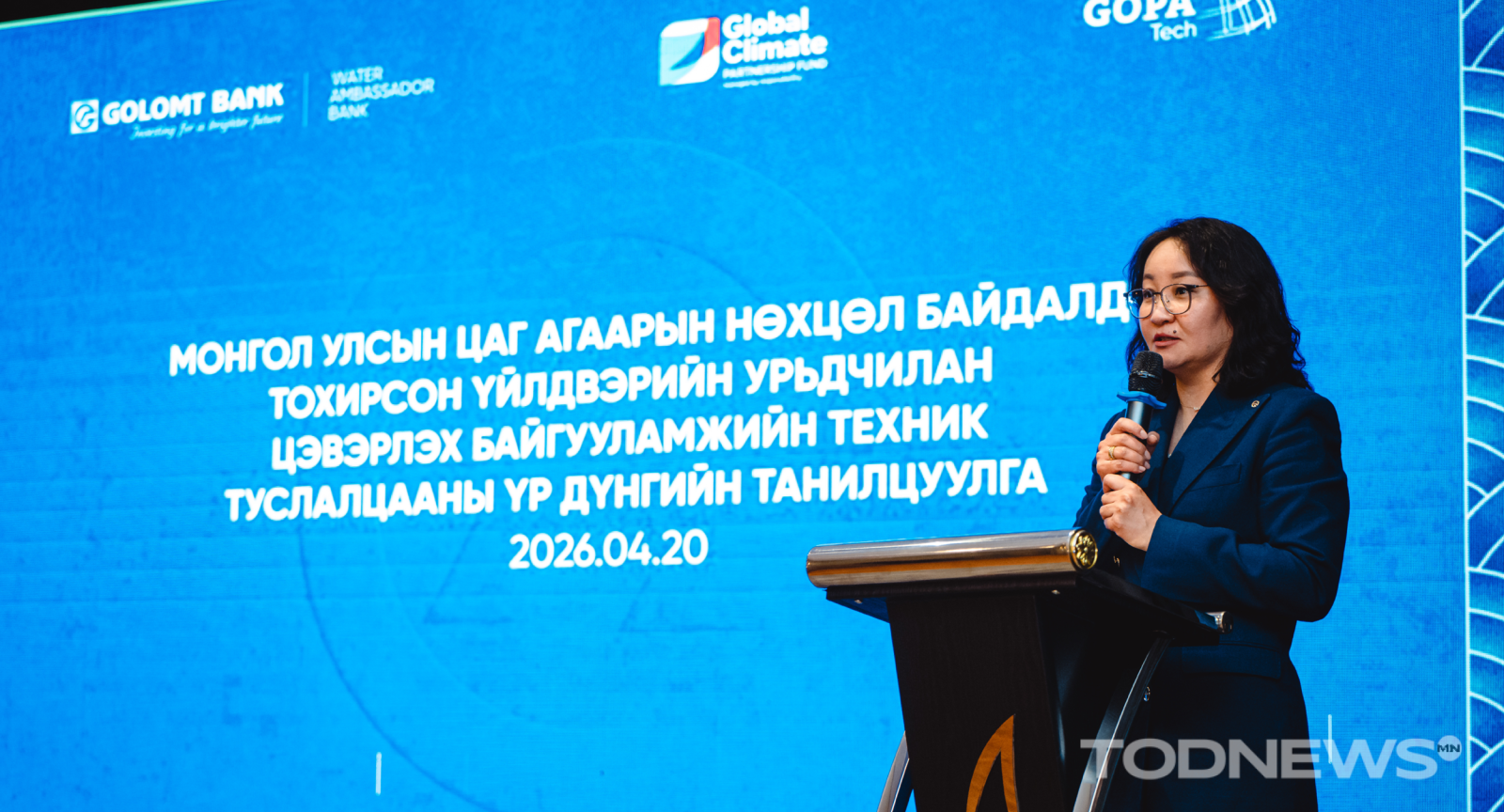 Голомт банкны Жижиг, дунд банкны газрын захирал Ц.Байгалмаа арга хэмжээг нээж үг хэлсэн бол GCPF байгууллагын Санхүүгийн байгууллага хөрөнгө оруулалт хариуцсан дэд захирал Quang Duy Bui цахимаар холбогдон уур амьсгалын санхүүжилт, олон улсын хамтын ажиллагааны талаар илтгэл тавьсан юм. Мөн Монгол Улсын ус ашиглалт, хаягдал усны өнөөгийн байдал, эрх зүйн орчны талаар Засгийн газрын хэрэгжүүлэгч агентлаг Усны газар болон Ус сувгийн удирдах газрын төлөөллүүд мэдээлэл өглөө.